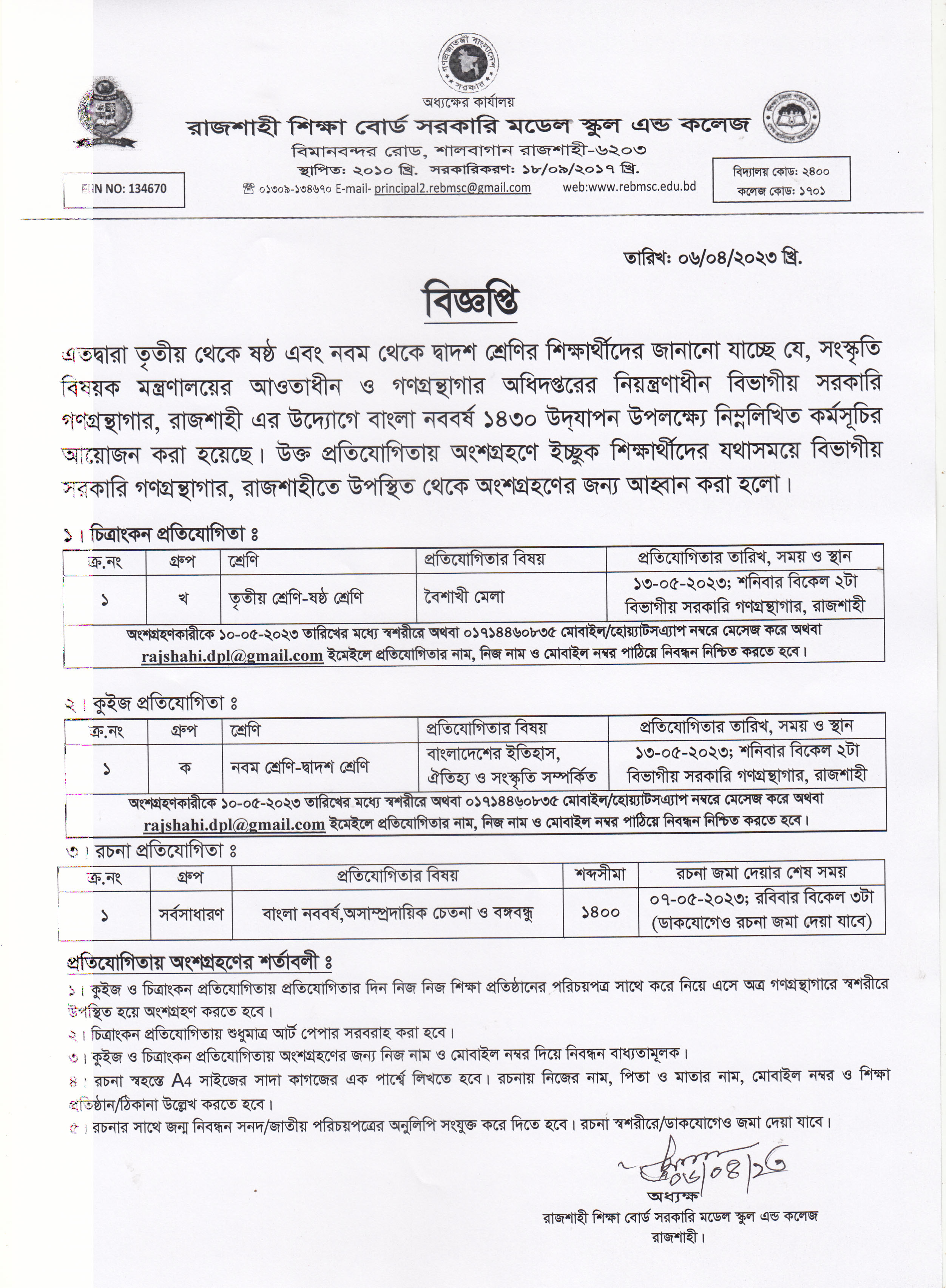 নোটিশ সমূহঃ
